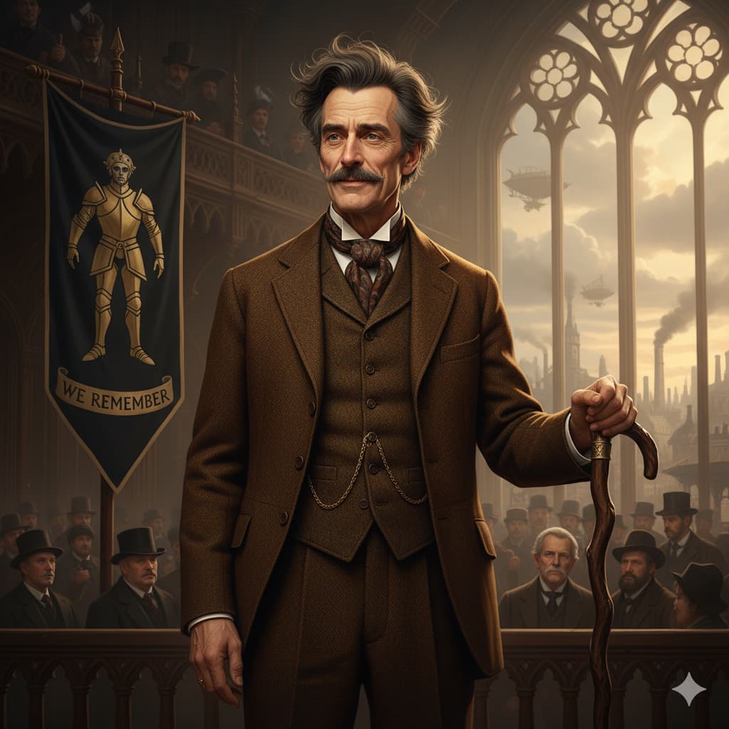 Lord Maelor Belmore, Primer Ministro del Parlamento del Valle: Delgado, de cabello oscuro y bigote perfectamente recortado, siempre con traje gris y bastón. Conservador pragmático, astuto, diplomático.