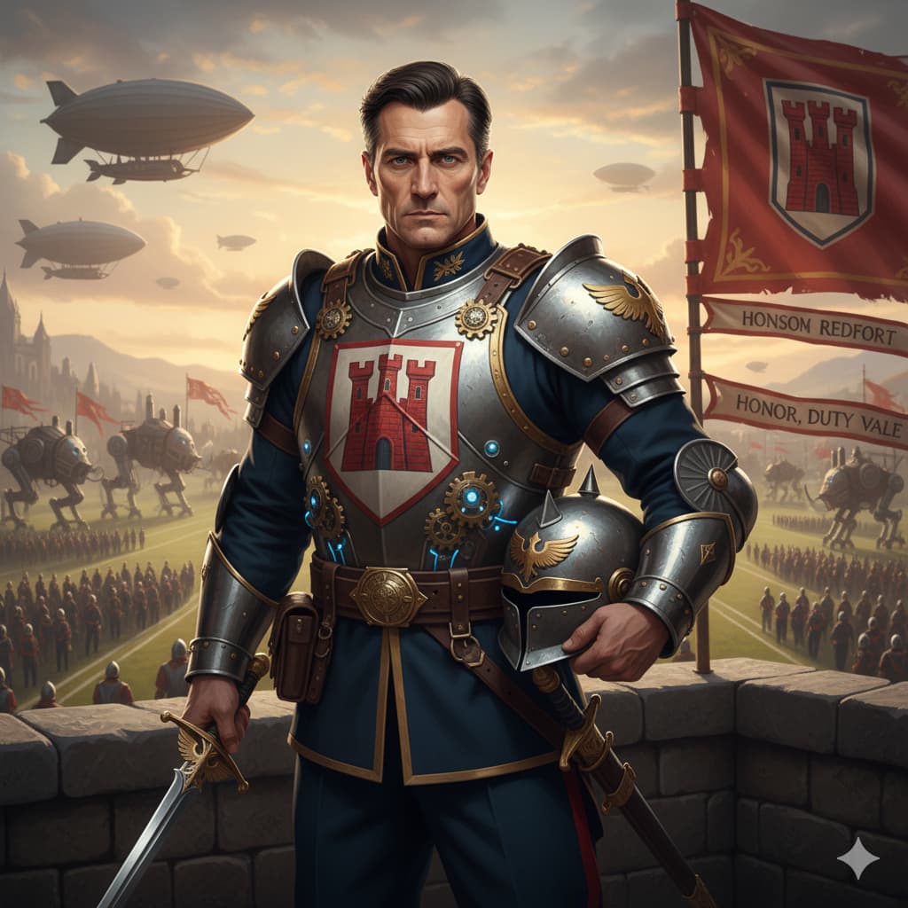 Ser Addam Redfort, Comandante de los Corceles del Este: Alto, de complexión atlética, lleva siempre su peto de acero con el castillo rojo de los Redfort. Marcial, disciplinado, amante del honor, enemigo acérrimo de los boltoncheviques.