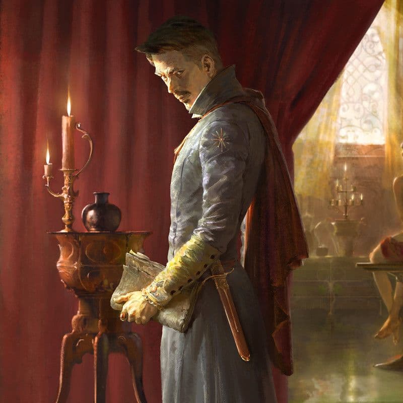 Harrold Hardying, vestido con una armadura ceremonial que brillaba bajo la luz de los candelabros, esperaba a su novia en el altar. Su porte noble y su mirada decidida mostraban a todos que estaba listo para asumir su futuro papel como heredero del Valle del Arryn y señor del Nido de Águilas. Los ojos de los presentes se centraron en él, admirando su presencia imponente y la dignidad con la que llevaba su armadura.