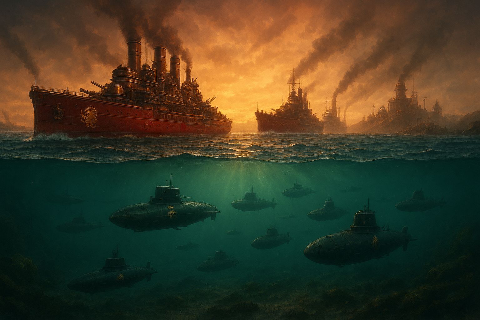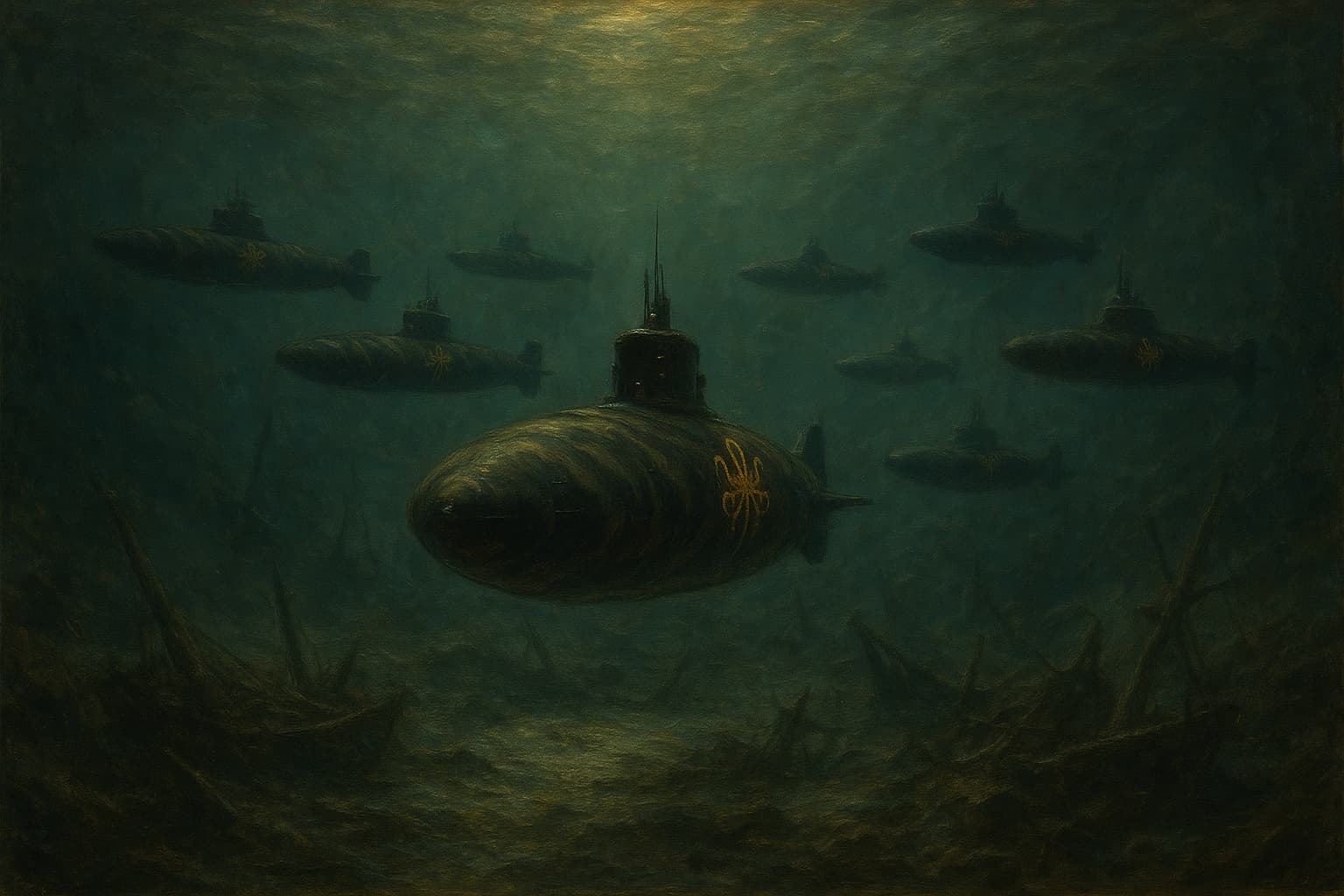 Posicionaremos los submarinos bajo la formación enemiga. Para que sea más difícil que identifiquen el origen del ataque.