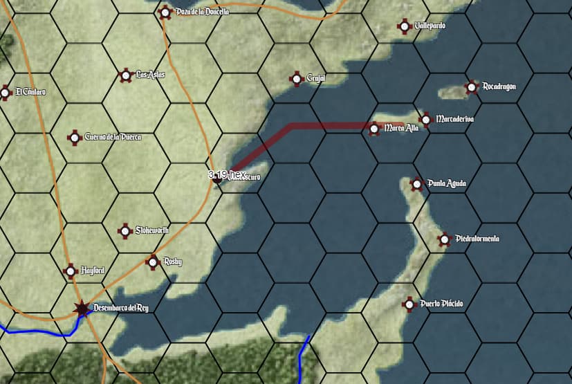 Un ejército de tamaño 6 necesita medio día para ir desde Marcaderiva hasta Valleoscuro