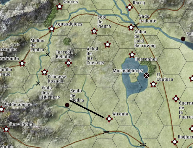 El token “Hombres de Catelyn” se moverá al Puente de Atranta para mantener el control del lugar y que nadie se acerque por ahí.