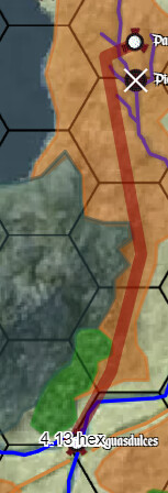 - 5 hexágonos de difícil (bosque, colinas, pantano …), a marcha normal, cruzando un río, en 36 horas