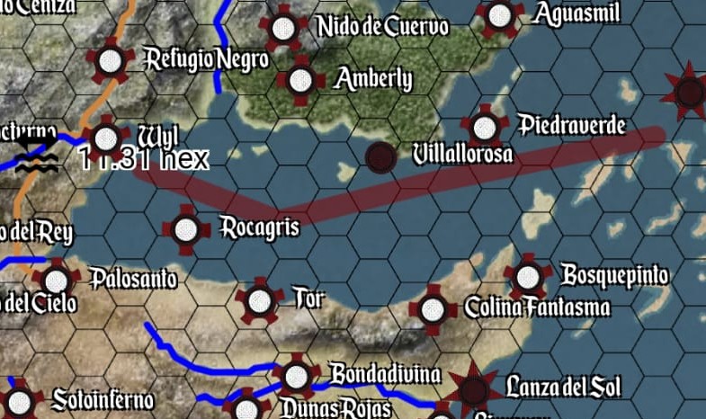 Ahora mismo estás a un hexágono de distancia junto con las tropas supervivientes en medio del mar de Dorne.