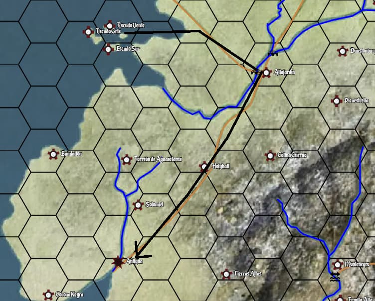 Un ejército de tamaño 1 necesita 2 días para ir desde Escudo Verde hasta Antigua
