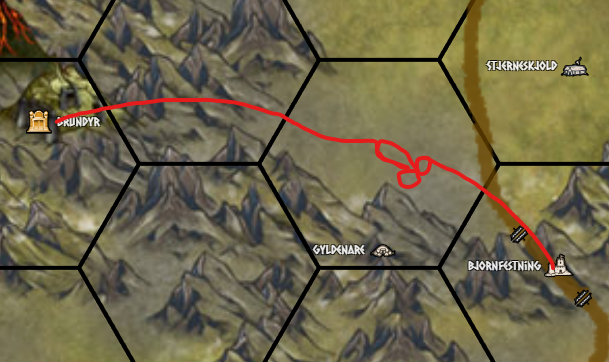 Jorund se ha puesto un poco nervioso con el volcán y va a hacer unas ofrendas a los Señores de la Montaña, para asegurarse de que todo OK, que cero dramas, y que seguimos en contacto. Por “sacrificios” yo entiendo comida y eso, pero bueno, si no es así supongo que Jorund sabe qué se suele sacrificar a esa gente xD. Manda a Halvar con un chamán de confianza y una docena de guardias a llevarles carne salada, botas de vino, cosas así, hacer un ritual chulo, hacerse los entretenidos por la zona y volver al rato a ver si ha pasado algo, y venir a contárselo.