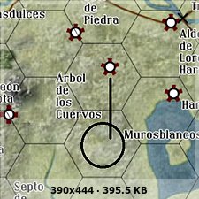 Tiempos: Un pequeño grupo necesita 10 horas para ir desde Árbol de Cuervos hasta Alto Corazón. Cruzará 2 hexágonos de llanuras en 10 horas marchando forzadamente