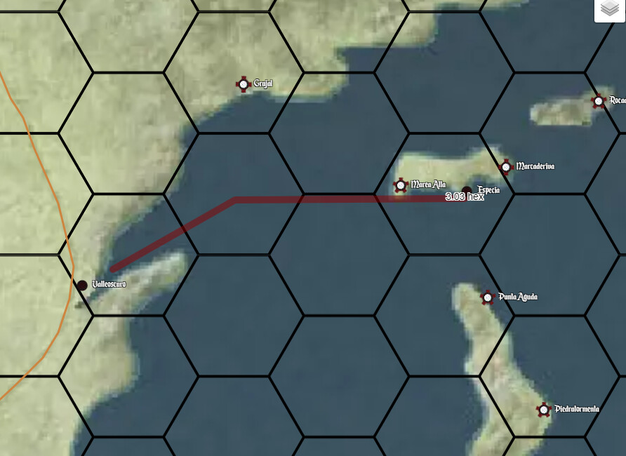 - 3 hexágonos de costa, a marcha normal en 8 horas + 24 por embarcar