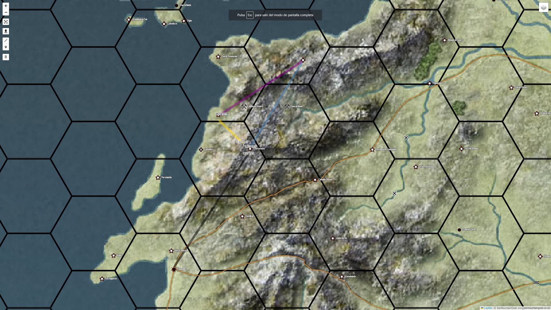 - 1 hexágono de montañas, a marcha normal en 11 horas