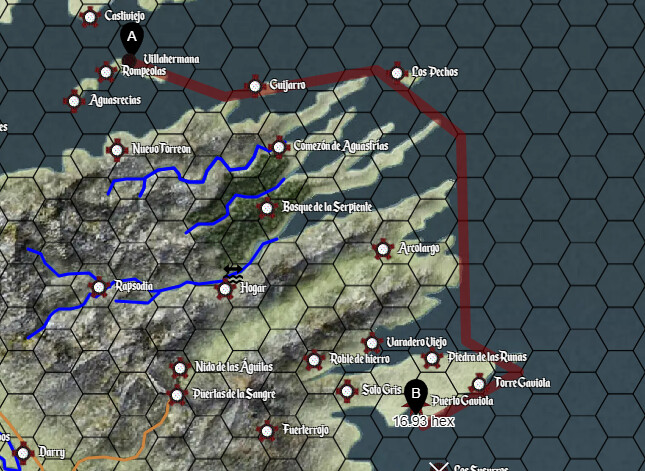 - 17 hexágonos de costa, a marcha rápida en 26 horas