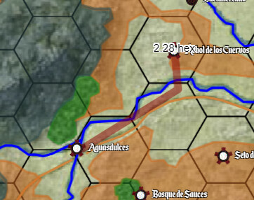 - 2 hexágonos de caminos, a marcha normal, cruzando un río, en 12 horas