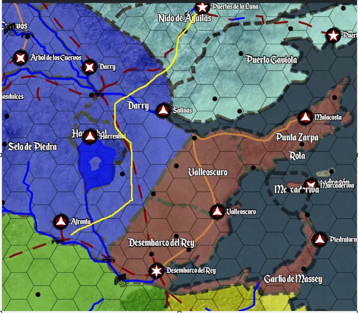 Lloyd Royce, sito en Harrenhal, actúa como autoridad civil vinculada con el Gobierno para la acción militar de protección de la paz y recursos en Puenteamargo, supervisando el despliegue del ejército